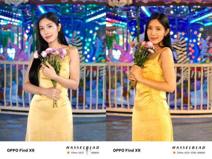 在人像拍摄上,OPPOFindX9新增了「暖调闪光」和「冷调闪光」两种色彩风格,需要搭配手机的闪光灯拍摄,拍出类似于CCD风格的闪光人像。