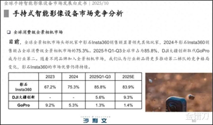 昔日全球老大GoPro,更是在它们的竞争中被一步步边缘化。今年第三季度,其在运动相机赛道的全球市场份额下滑至15.7%——这场深圳德比,附赠了国人喜闻乐见的西方祛魅、国产崛起的戏码。